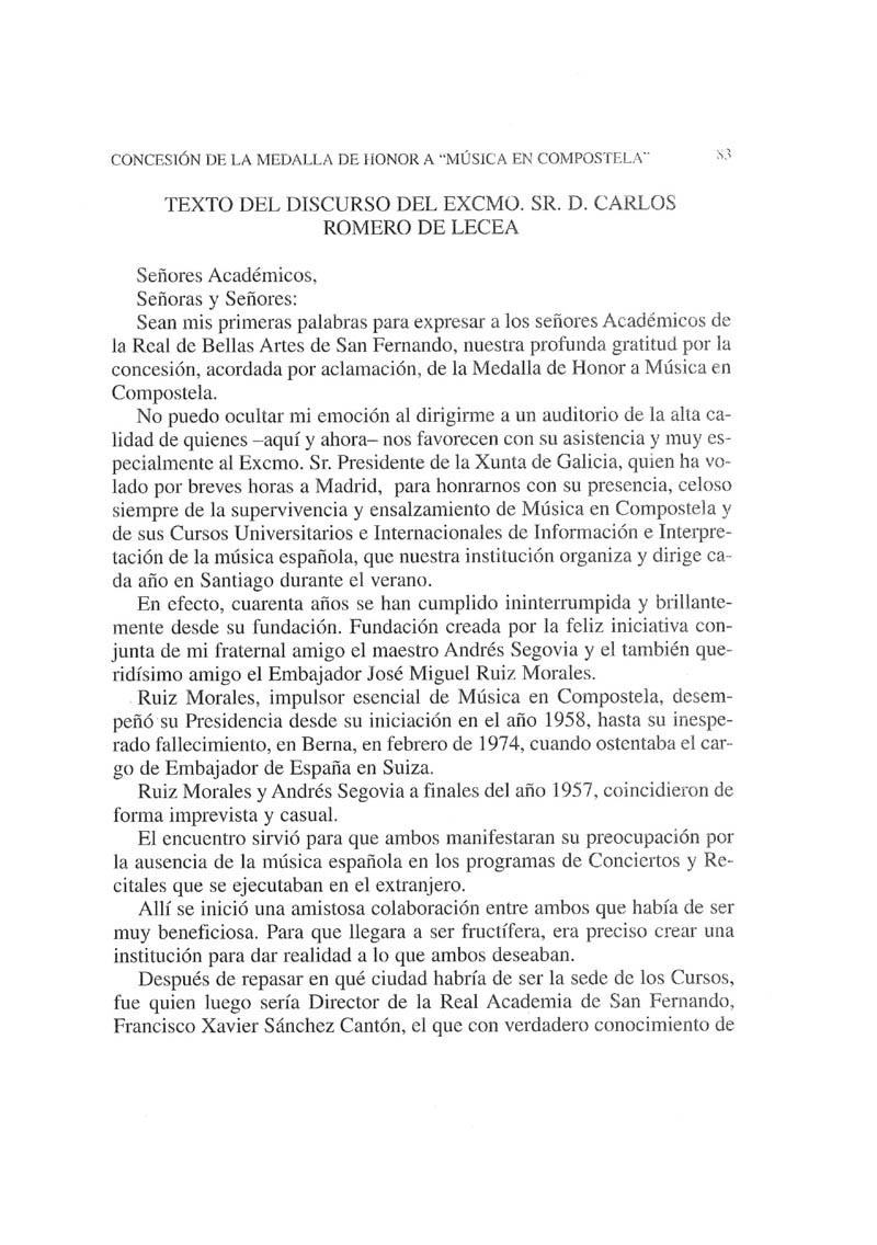 Concesión de la Medalla de Honor 1997 a «Música en Compostela»