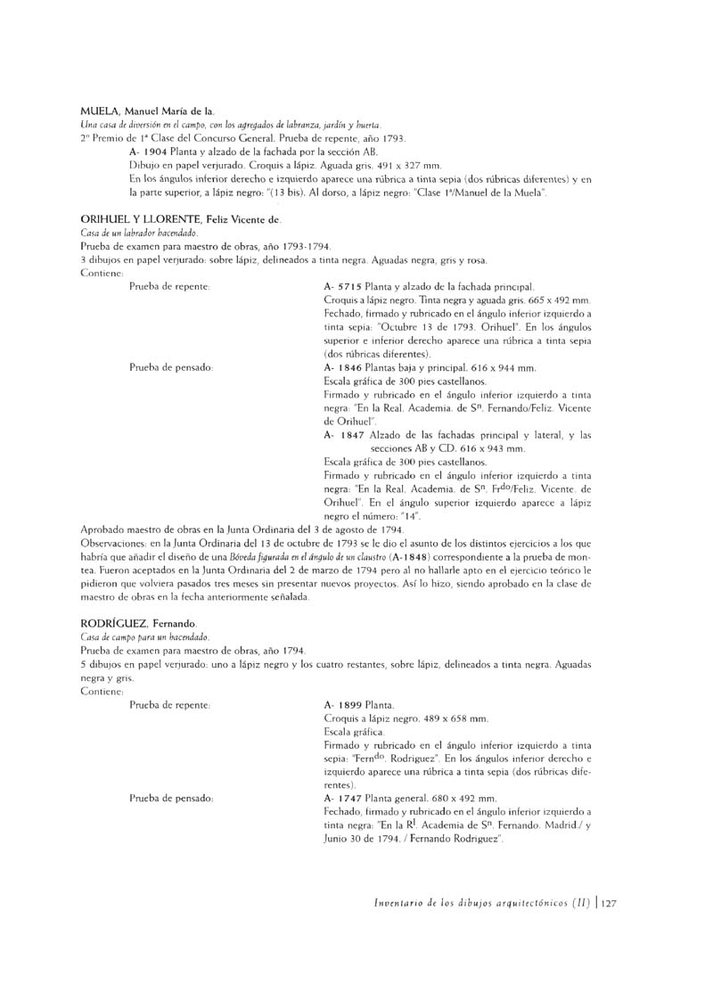 Inventario de los dibujos arquitectónicos (de los siglos XVIII y XIX) en el Museo de la Real Academia de Bellas Artes de San Fernando (II)