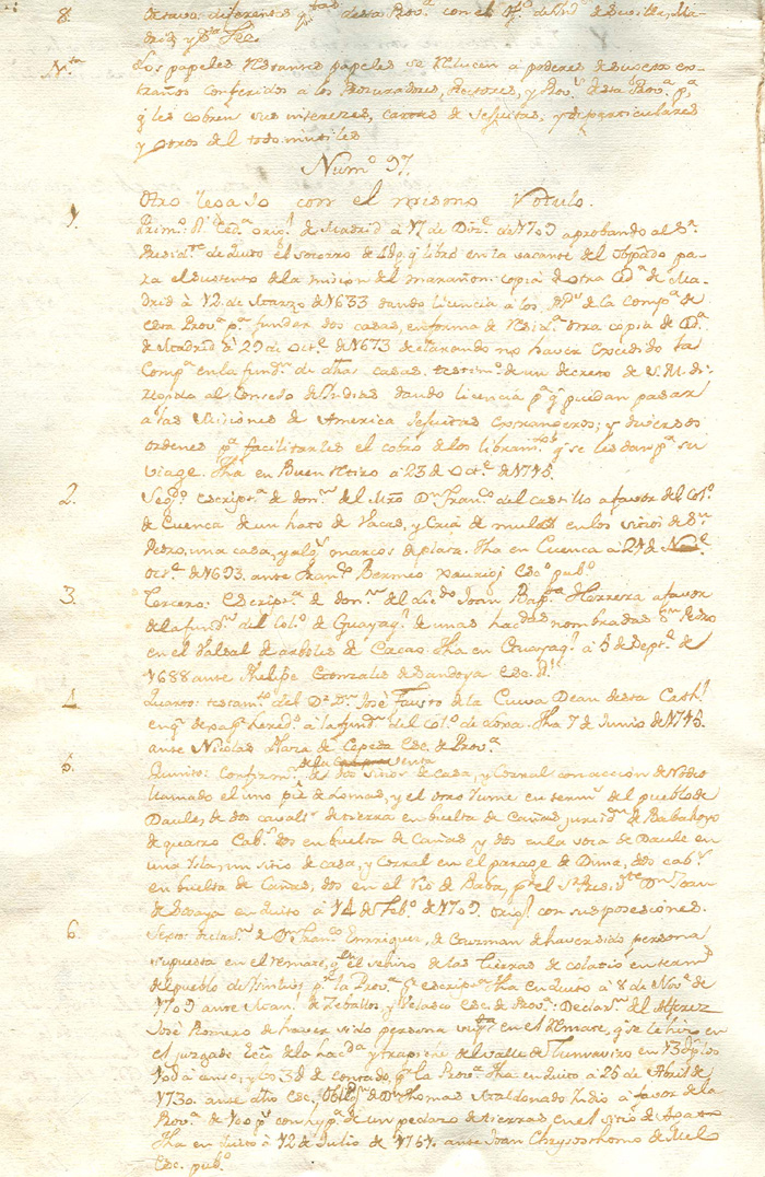 Resumen de libros y papeles de los jesuitas y Colegio Máximo de Quito, expatriados |