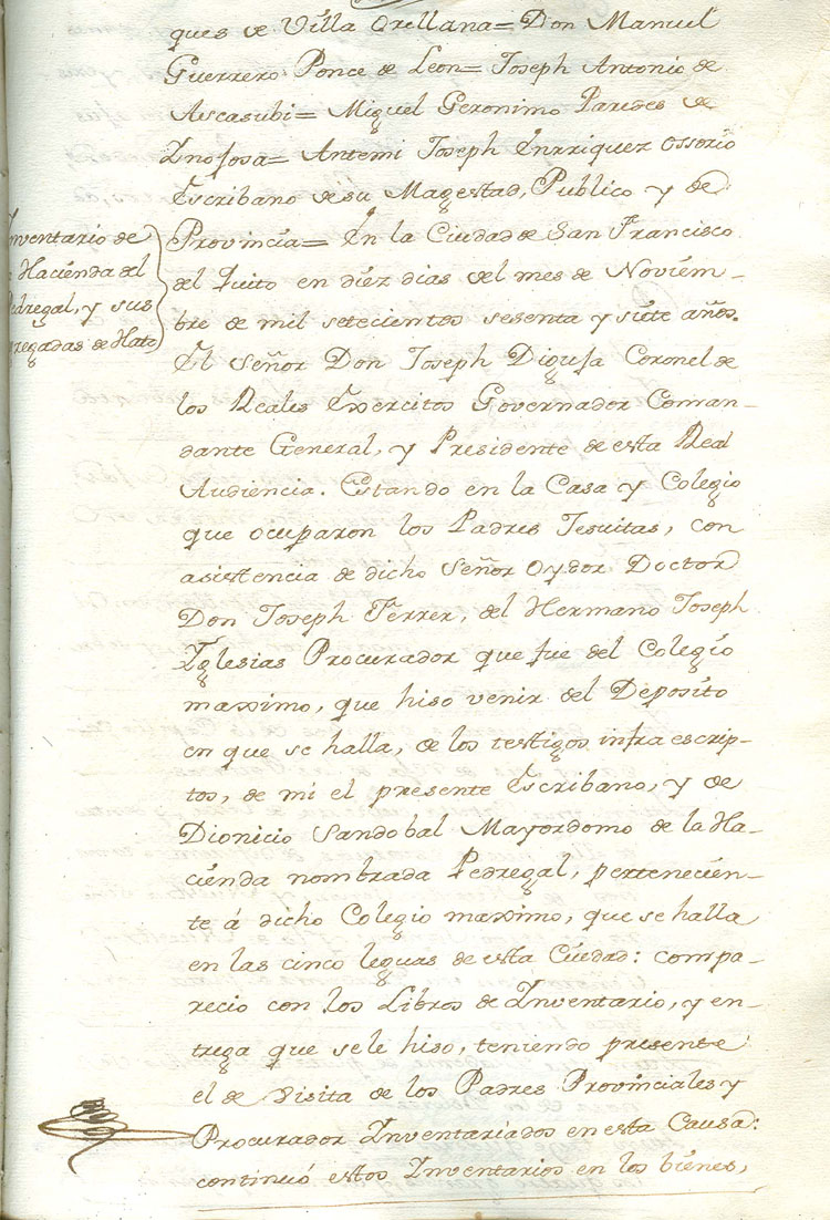 Testimonio del seqüestro [sic] del Colegio Máximo de Quito actuado el 20 de agosto de 1767Colegio Máximo de Quito |